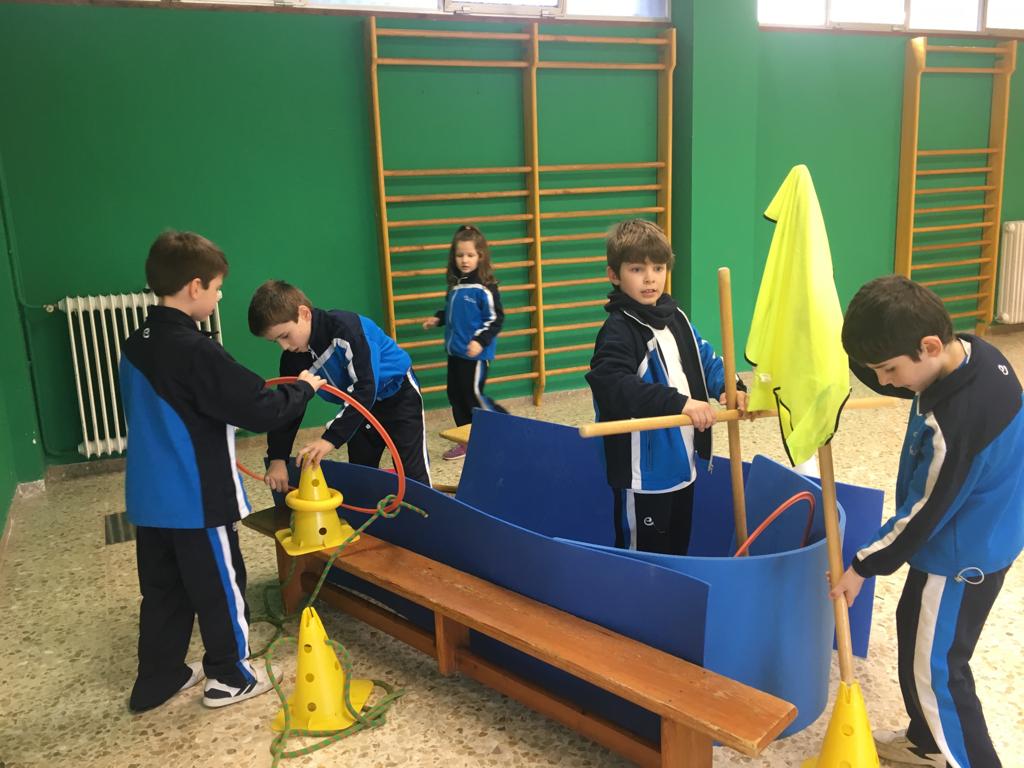 Construimos nuestro barco, seremos náufragos que deben llegar a tierra, iremos a la isla del tesoro y realizaremos danzas cuando consigamos nuestro botín.